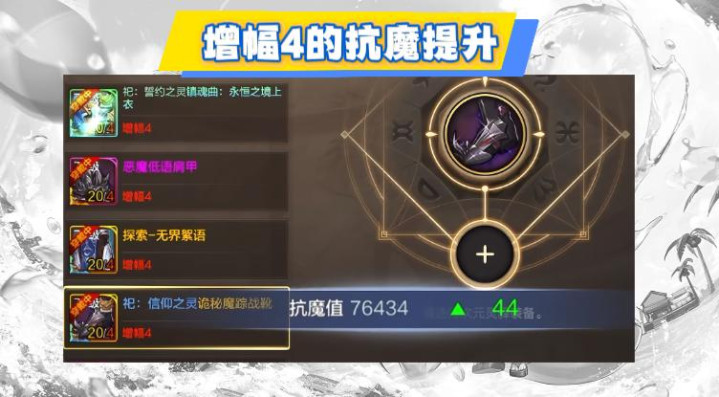 但其实增幅加的抗魔并不多,非武器部位增幅1加10抗魔,增幅4才加44抗魔,堪称地下城手游最实心的打造,所以等到9月安徒恩开荒的时候,可别傻乎乎只看抗魔值了,得多看一眼增幅等级。一些大黑蛋子的氪佬,抗魔不一定顶尖,但伤害依旧很爆炸。