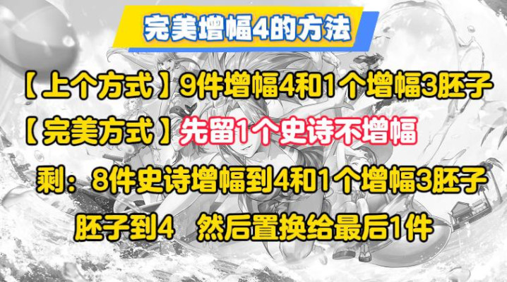 完美版本是先增幅8件史诗,留1个没增幅过的史诗,然后剩下增幅3的胚子,增幅到4置换给第9件史诗,这样可不浪费1个矛盾。