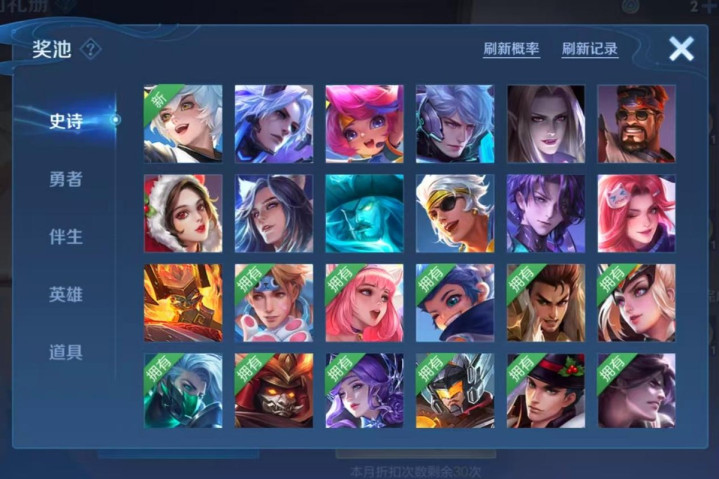 奖励方面,刷新进度每达到20次,则可以必得勇者或史诗皮肤,而每达到120次时,则必定得到史诗皮肤,且优先给到玩家未拥有的史诗皮肤,此外每次刷新都有概率可以获得史诗皮肤,不过概率仅为1%。