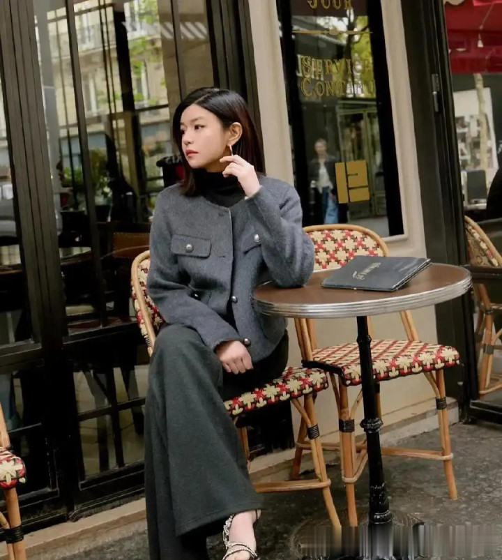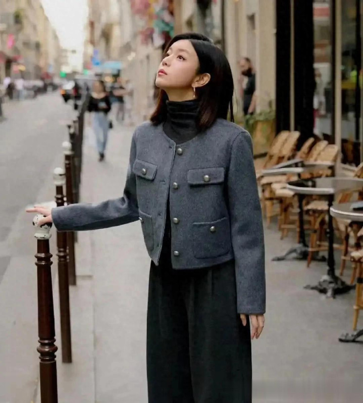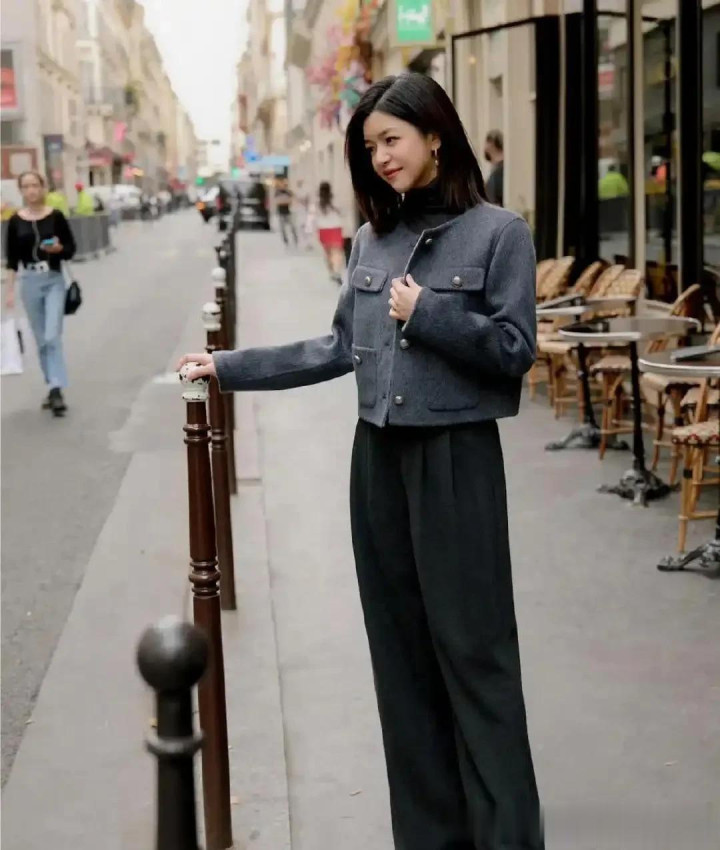 陈妍希离婚后状态大回春! 穿灰色短外套+阔腿裤, 洋气又高级!