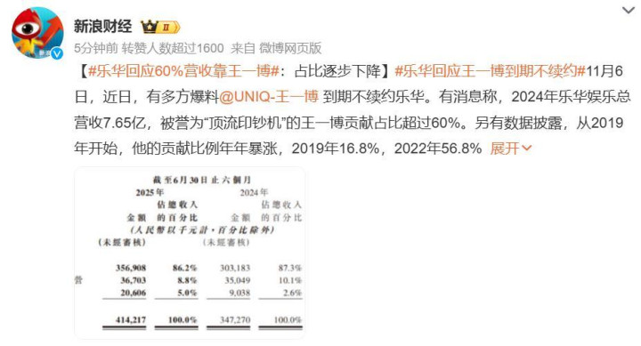 乐华投资者关系部门在正式回应中明确表示,王一博在公司的收入占比“正逐步下降”。这一表态背后,似乎暗示着乐华在艺人培养和业务布局上有着更为深远的规划。从公司的发展战略角度来看,过度依赖单一艺人无疑是一把双刃剑。尽管王一博凭借其超高的人气和卓越的演艺才华,为乐华带来了巨额的收入和广泛的品牌影响力,但这种高度集中的营收模式也给公司带来了潜在的风险。一旦艺人出现负面事件或者合约到期等情况,公司的业绩很可能会遭受重创。乐华强调收入占比下降,或许是希望向投资者和市场传递一个信号:公司正在积极调整业务结构,降低对单一艺人的依赖,以实现更加稳健和可持续的发展。