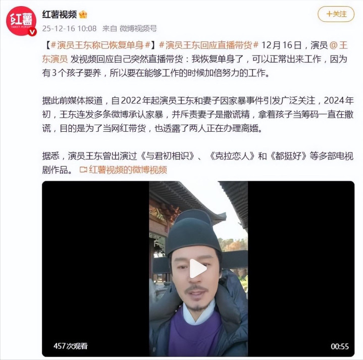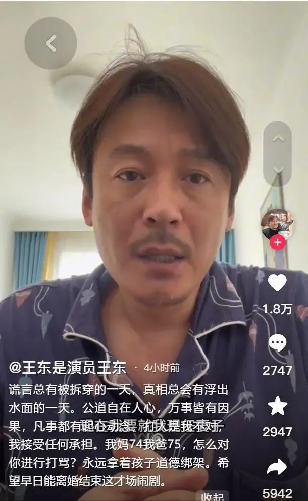 已经47岁的男演员王东官宣离婚,如今为了养活三个孩子开启了直播带货,