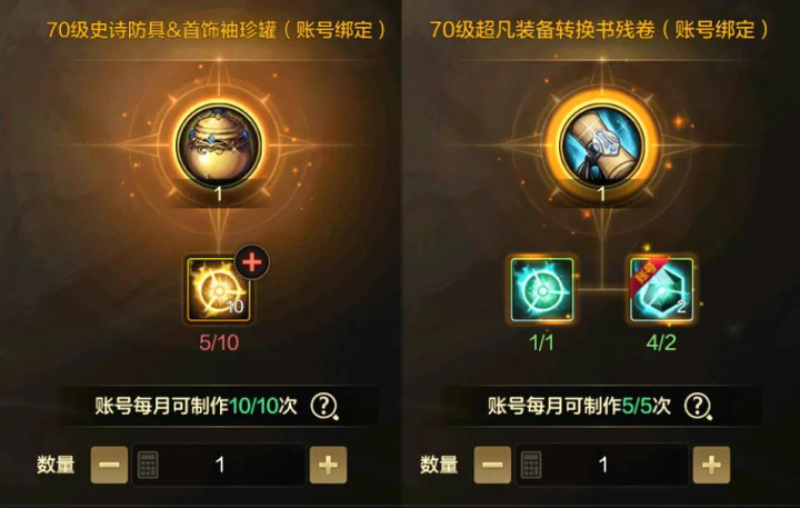 【2】制作系统中,每个月可制作「10个史诗罐子+5个超凡升级券」。