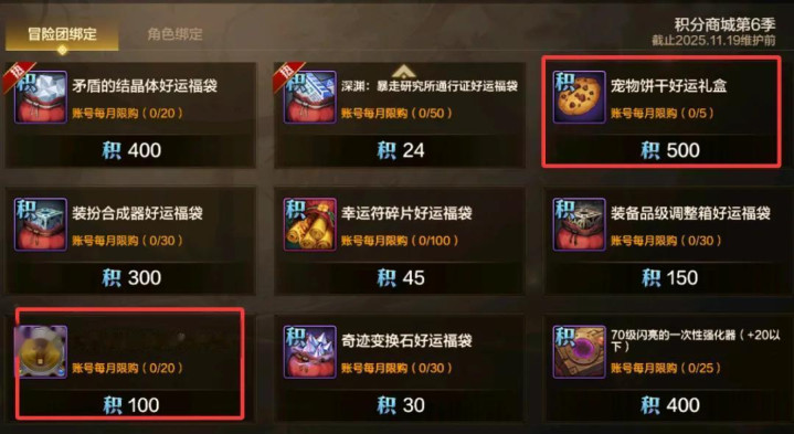 【3】积分商城可兑换“矛盾福袋”“属强徽章”和“宠物饼干”,都是按照每月次数限制的。