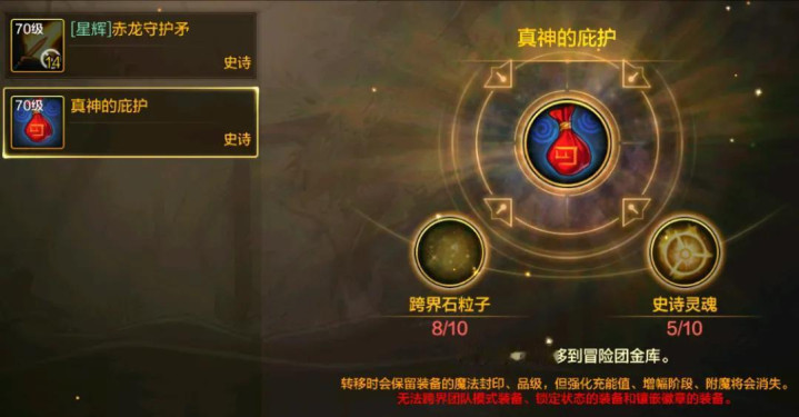10个跨界石粒子可以选择跨界1件70级史诗,