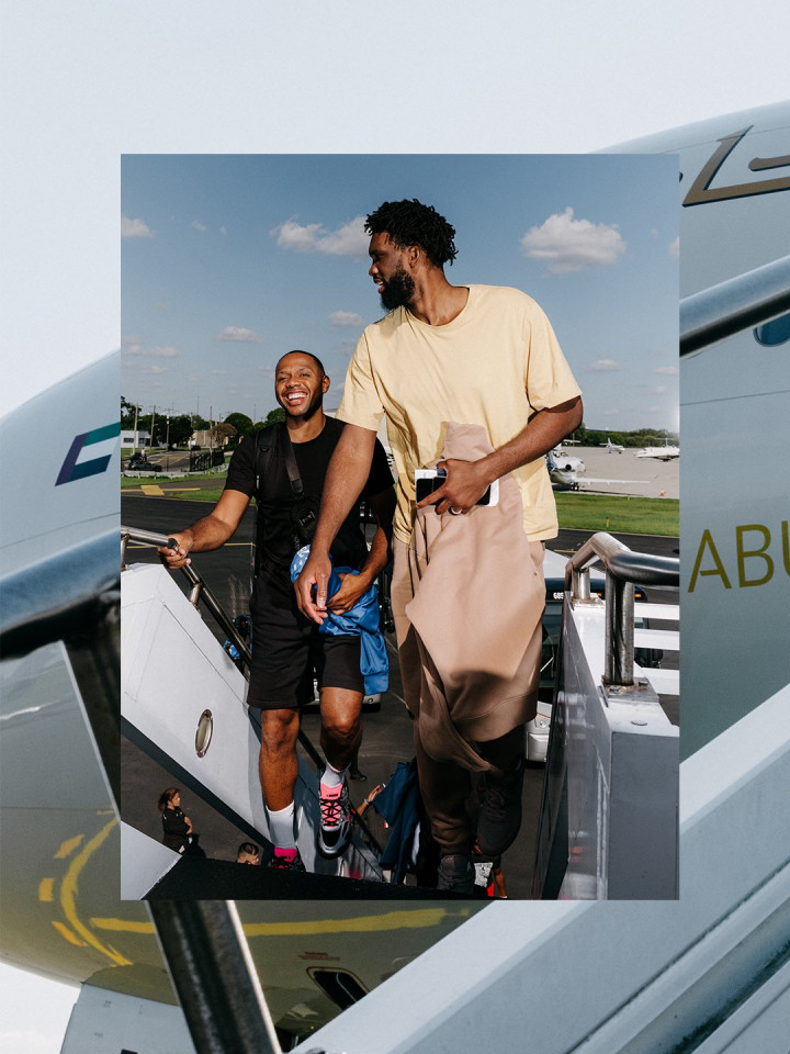 训练结束后,76人众将乘坐专机飞往阿布扎比,官方晒出众将的登机画面,恩比德、马克西等人一脸轻松,他们将在阿布扎比与尼克斯打两场季前赛。