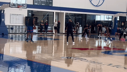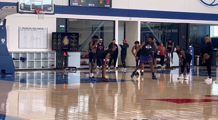 76人众将继续在训练营中备战新赛季,恩比德和马克西继续带队训练,目前乔治仍无法参加合练,连续两天进行个人训练;训练之余,马克西、新科探花埃奇库姆和多米尼克-巴洛等人进行一对一单挑赛。