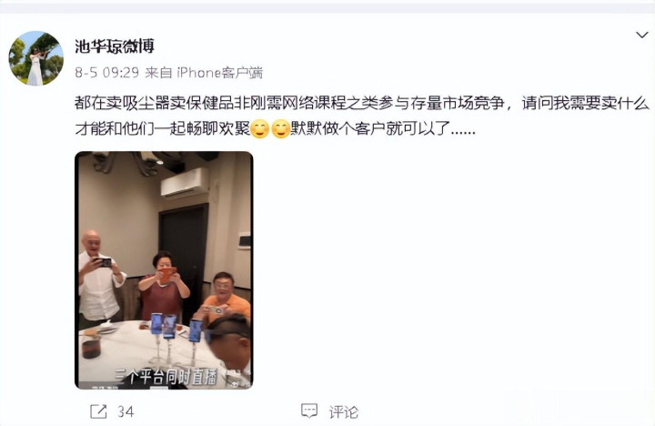 池华琼借社交媒体直截了当地道出自己不参加聚会的真正缘由:“与他们并非同道之人,不必再见。”
