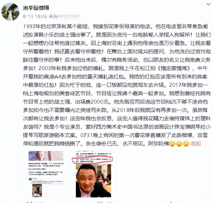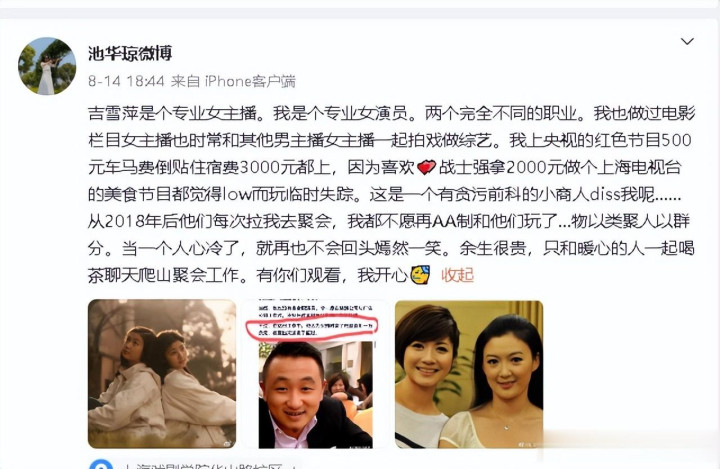 更让人意外的是,这条动态直接促成了池华琼和吉雪萍的关系告终。据传,吉雪萍不但未曾与池华琼有过交流,竟还一怒之下将对方的微信拉黑了。