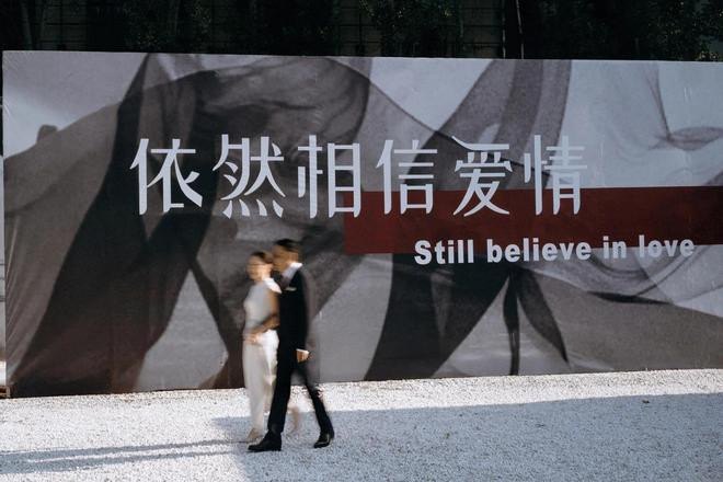 李国庆到老仍浪漫,婚礼也不是土掉渣的老年人风格,把黑白色调拿捏得恰到好处,“依然相信爱情”这个主题更像是对上一段失败婚姻的抗争。两人在舞台上拥抱的画面,更像是跨越40年的重逢之旅。