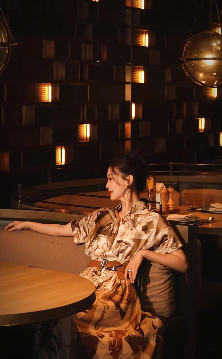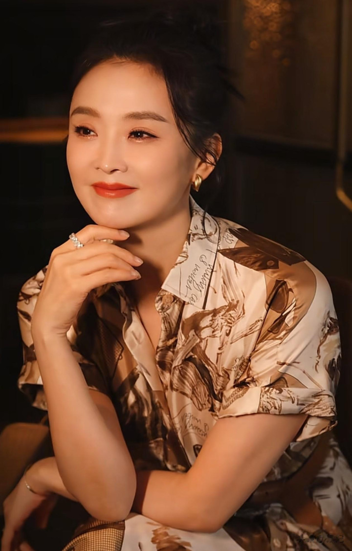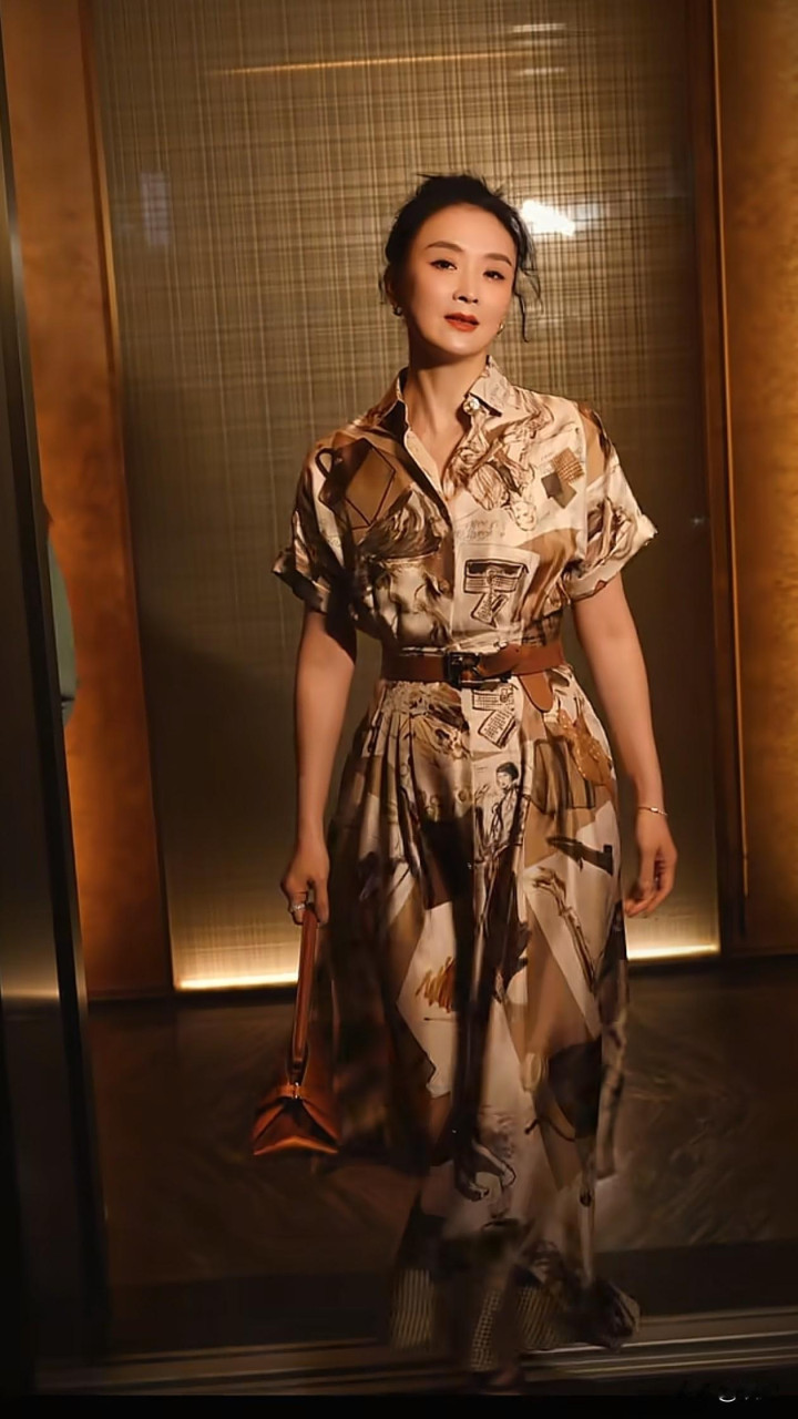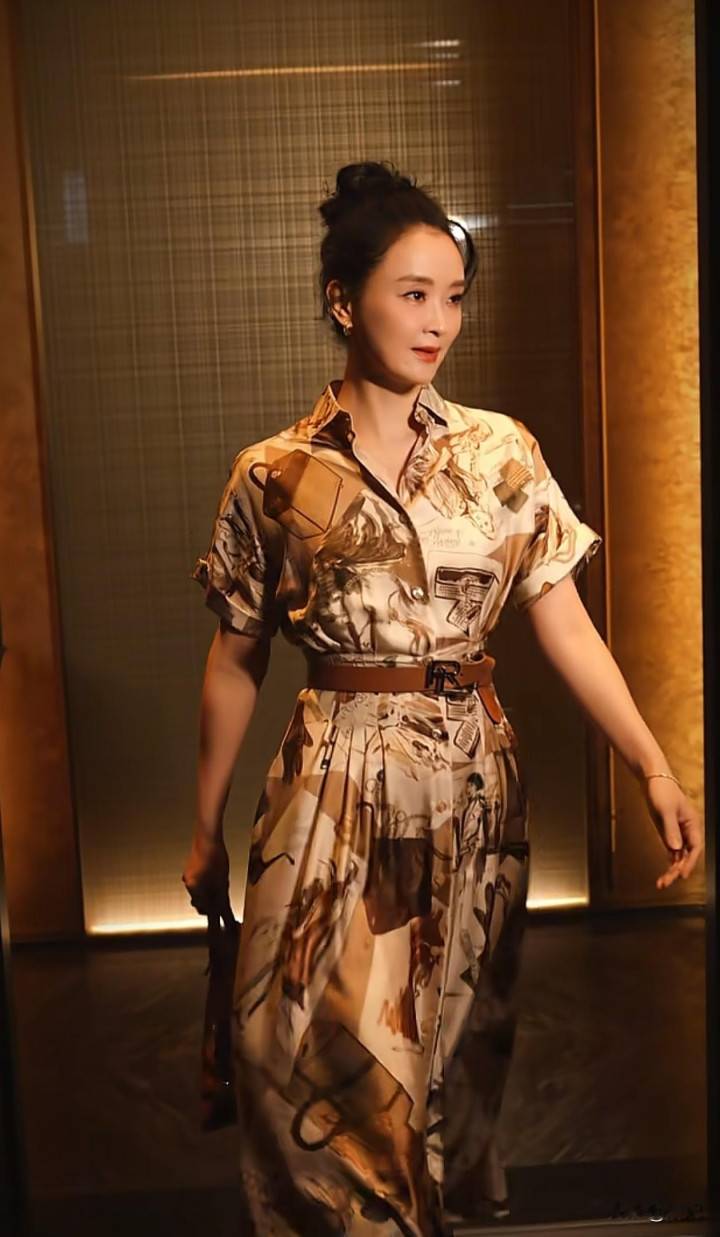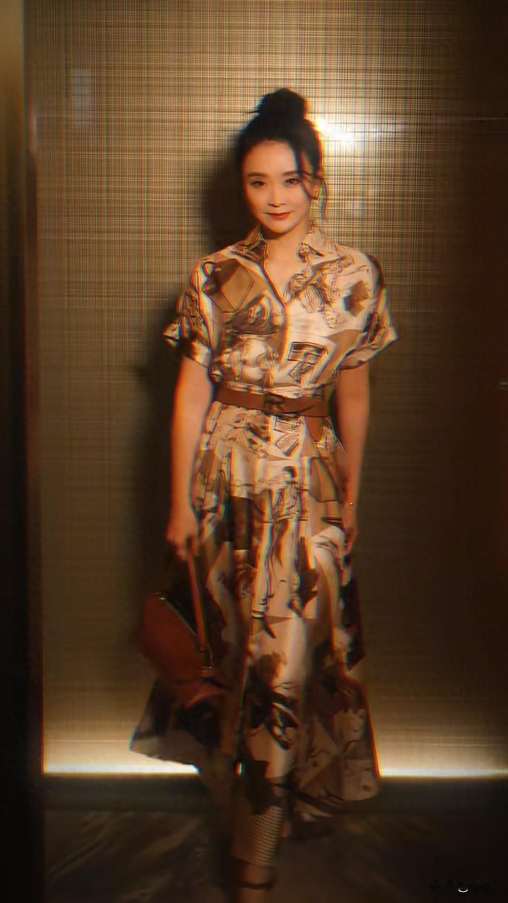 51岁王艳最新穿搭: 丸子头+印花裙, 优雅又减龄, 状态好得像31岁